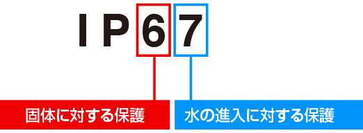 IP表示には二つの数字がついており[左側はチリ・ホコリ][右側は水]に対する耐性を段階別に表しています。