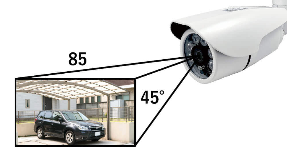 カメラレンズは水平85°/垂直45°の広視野角。湾曲も少なく広範囲をきれいに表示します。