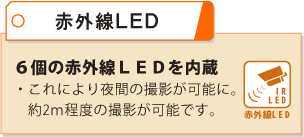 | 赤外線投光距離 | 約2m | 動作温度範囲 | 0~+40℃ |