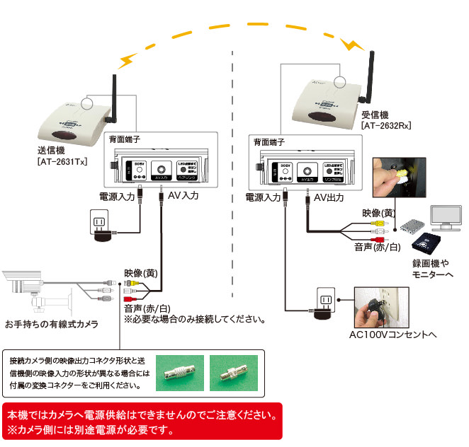 | 電源・電圧 | DC5V 1A 付属アダプター (送信/受信機共に) |