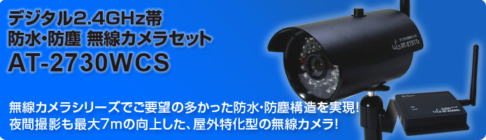 | 増設用無線カメラ(防水屋外) AT-2731Tx ![]() 価格: オープンプライス JAN:4560270960559 防水タイプの屋外増設用カメラ 駐車場などの完全屋外設置に! |
