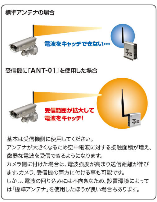 ■アンテナオプション ※AT-2510MCS AT-2511Tx AT-2512MRxには使用できません 掲載しているの電波到達距離はテスト時の結果に基づいた動作確認距離となっております。 掲載の数値は目安であり、電波の飛びを保証するものではありませんのでご了承下さい。 |