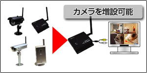 ![]() 別売のカメラオプションを利用すれば、1台の受信機に対してカメラ(送信)側を最大4台まで増設可能です。 |