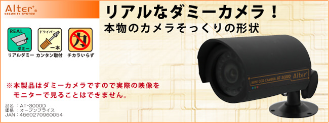 本物の防犯カメラ(AT-3000)とまったく同じ形のダミーカメラ。