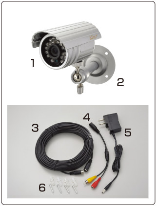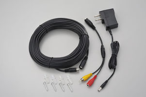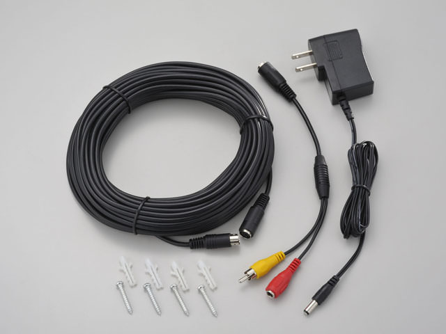 カメラ、取付けブラケット、20mケーブル、ACアダプター、必要なものがすべてパッケージの中に入っています。