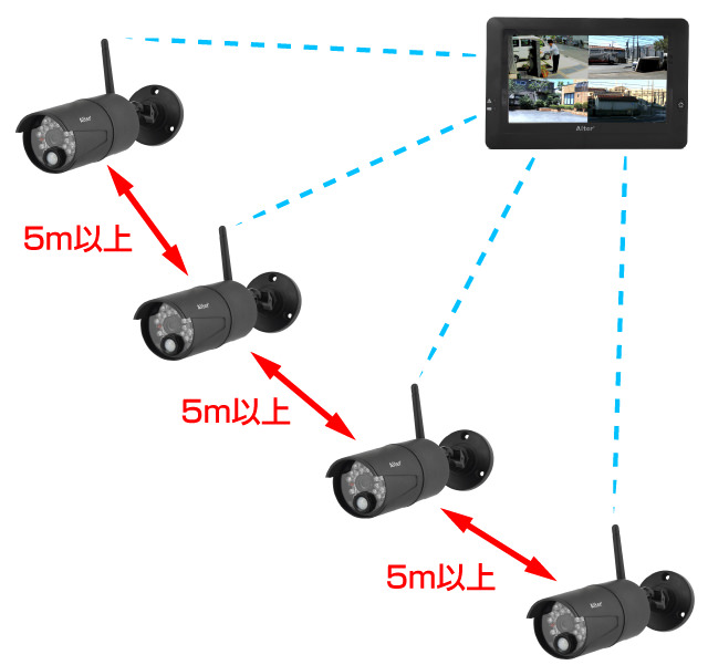 同一の場所でカメラが2台以上になる場合は5m以上の間隔をあけて設置してください。