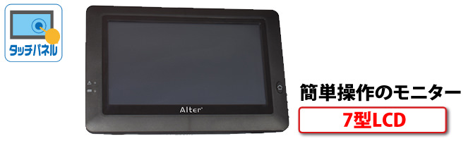タッチパネル仕様の7インチモニタを採用。タッチパネルなので操作したい場所をタッチして直観的操作が可能です。