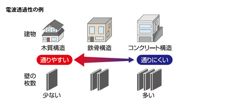 ※ビル・マンション・学校等の施設、窓の少ない建物、地下室等の建築物の場合、電波が飛ばない恐れがあります。