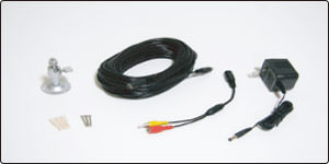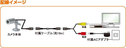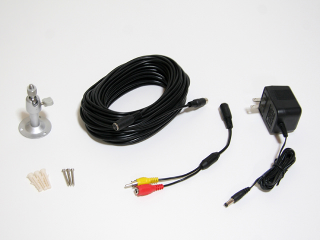 取付けに必要なブラケットやネジ、配線用の20mケーブルやACアダプターが全てセットになっており、ワンパッケージで基本取付けに必要なものが全て揃います。 |