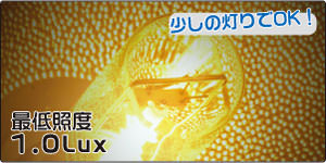 ※赤外線LED非搭載のため極度な暗闇下では撮像出来ませんが、玄関灯や街灯などが近くにある場合は夜間時でも映像撮影が可能です。 また、夜間は昼間の映像に比べてノイズが多く、被写体や周囲の明るさで映像品質が異なります。 |