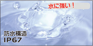 ![]() 一般のご家庭で使用する場合はやっぱり屋外がメイン。 雨に濡れても使用できるよう防水構造を施しました。 (IP67相当) |