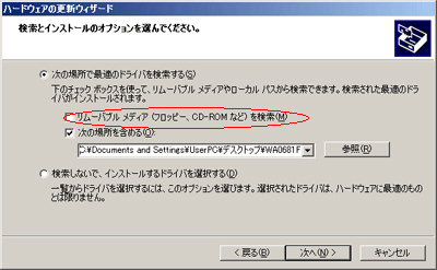 4.�t����CD-ROM��CD�h���C�u�ɑ}������Ă���̂�m�F���u�����[�o�u�����f�B�A�iCD-ROM�t���b�s�[�h���C�u�Ȃǁj����v�Ƀ`�F�b�N�����A���ւ�N���b�N����ƃh���C�o�̎蓮�C���X�g�[�����s�Ȃ��܂��B |